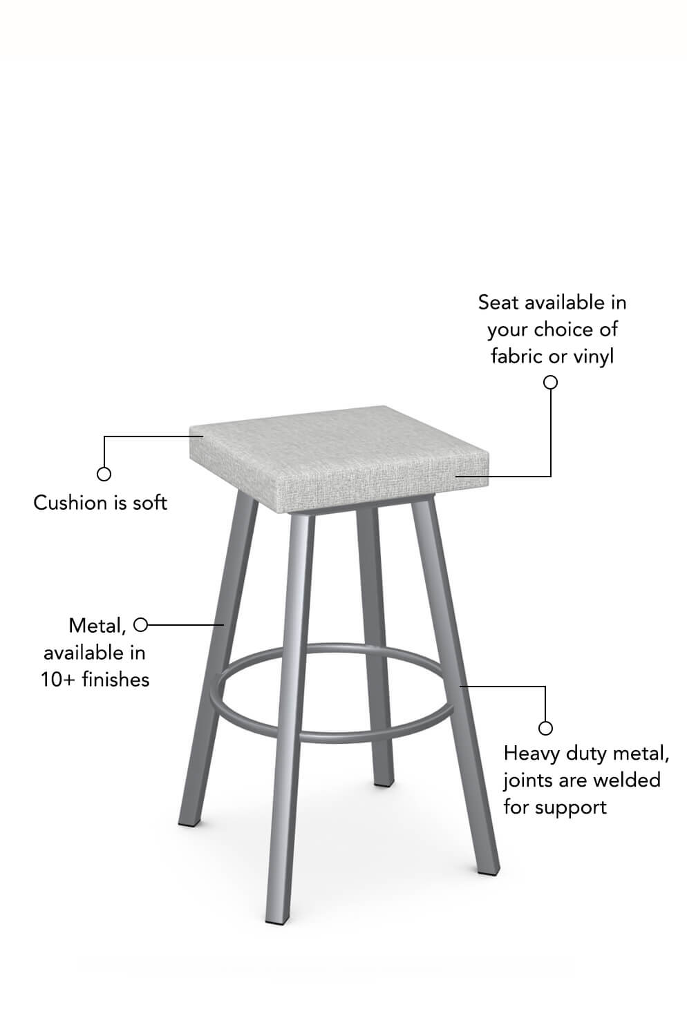 Bring home comfort with the all new Anders backless swivel bar stool by Amisco featuring a square seat cushion, ultra-sturdy steel frame, and a 360-degree swivel allowing you to turn every which way you desire.
