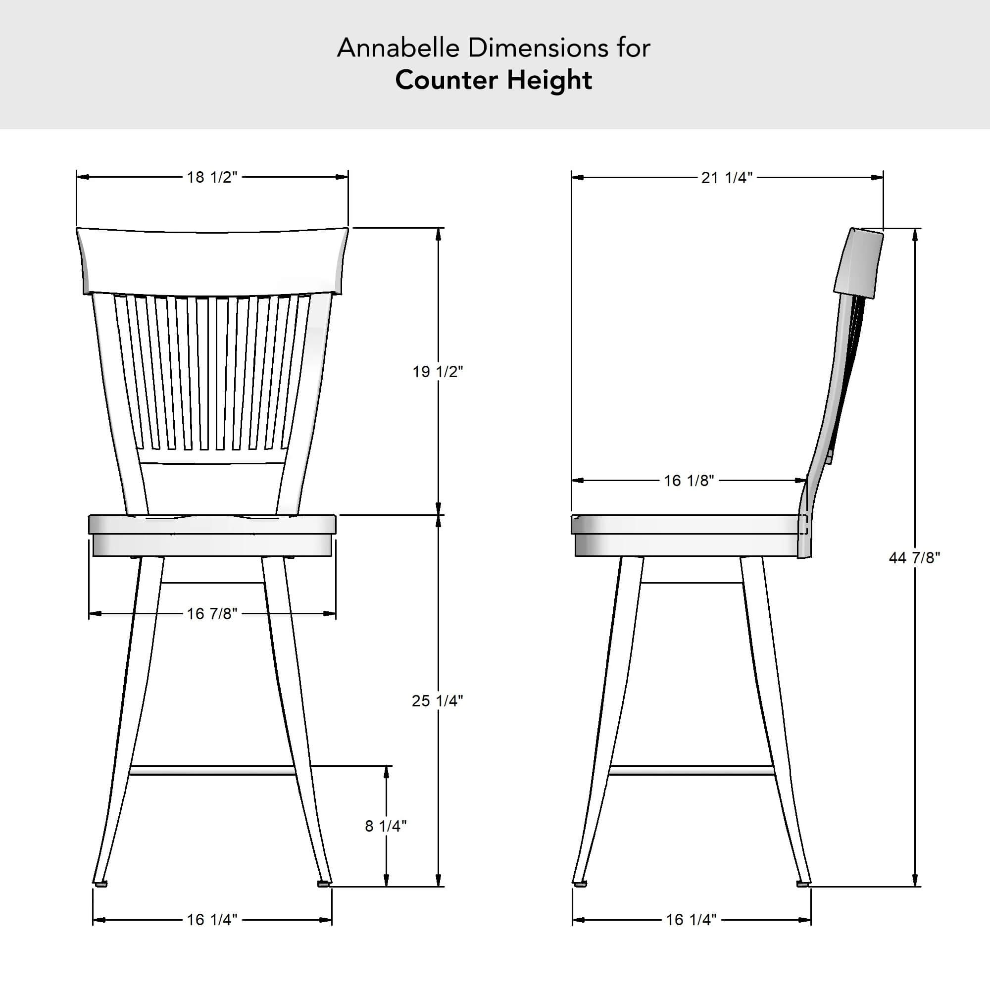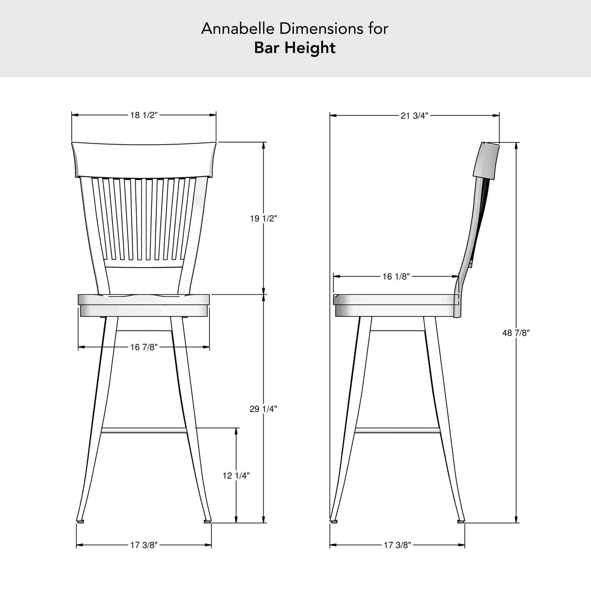Amisco's Annabelle Country Swivel Metal Bar Stool in Brown with Vertical Slats on Back and Wood Seat Amisco's Annabelle Farmhouse White Swivel Bar Stool with Natural Wood Amisco's Annabelle Gold Swivel Bar Stool with Wood Back and Seat Amisco's Annabelle Swivel Bar Stool in Gray Metal Finish and Cherry Seat Back Wood Finish with Back Amisco's Annabelle Country Swivel Metal Bar Stool in Brown with Vertical Slats on Back and Wood Seat - Back View Wood seat is available in a variety of wood finishes and the metal has joints that are welded for support. This bar stool is custom made for you! Amisco's Annabelle Farmhouse Swivel Stool in Counter, Bar, and Spectator Heights Amisco's Annabelle Swivel Stool with Distressed Solid Wood Back and Seat Amisco's Annabelle Counter Height Dimensions Amisco's Annabelle Bar Height Dimensions Amisco's Annabelle Spectator Height Dimensions