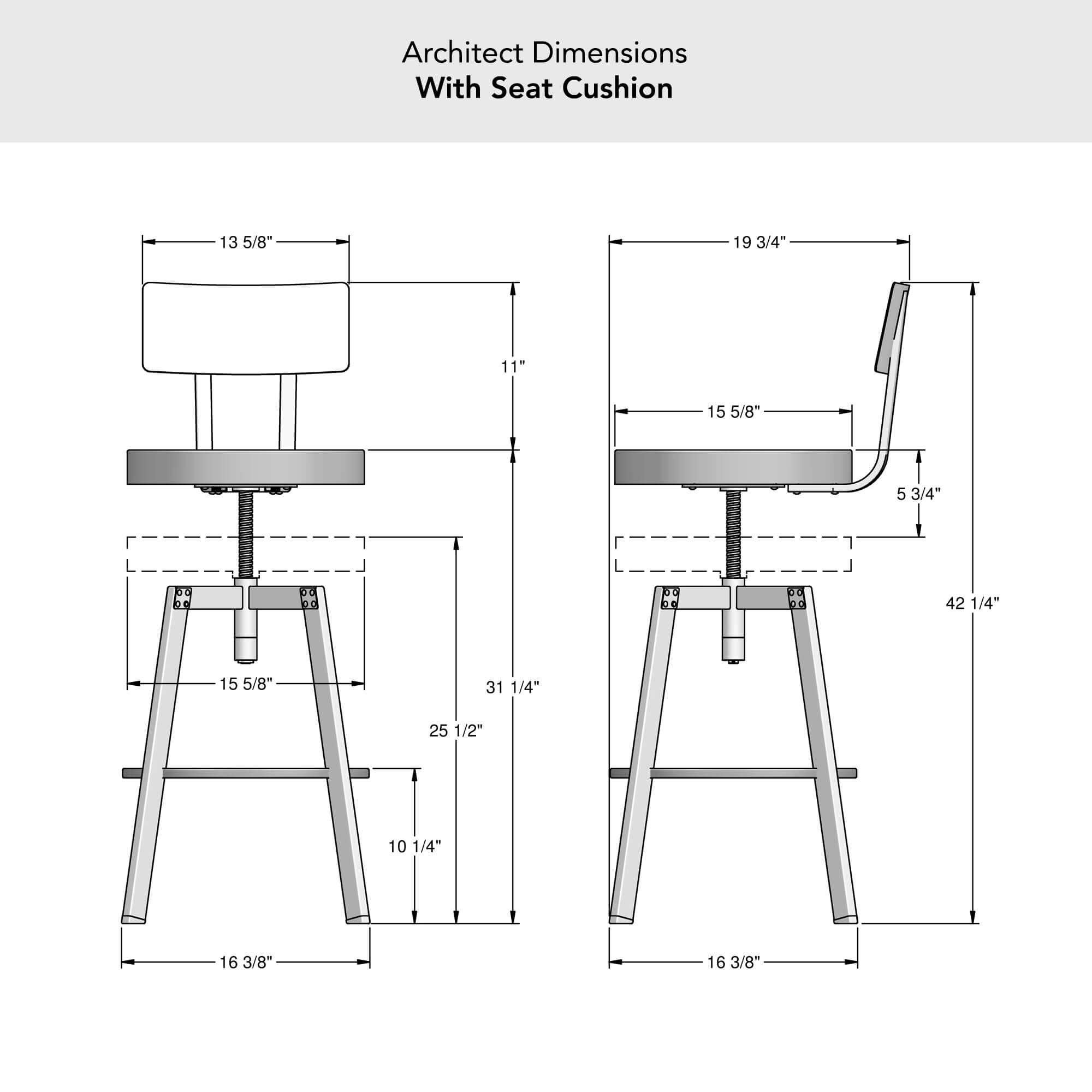 - Architect Industrial Adjustable Stool with Metal Back – 24.5″ up to 31.25″