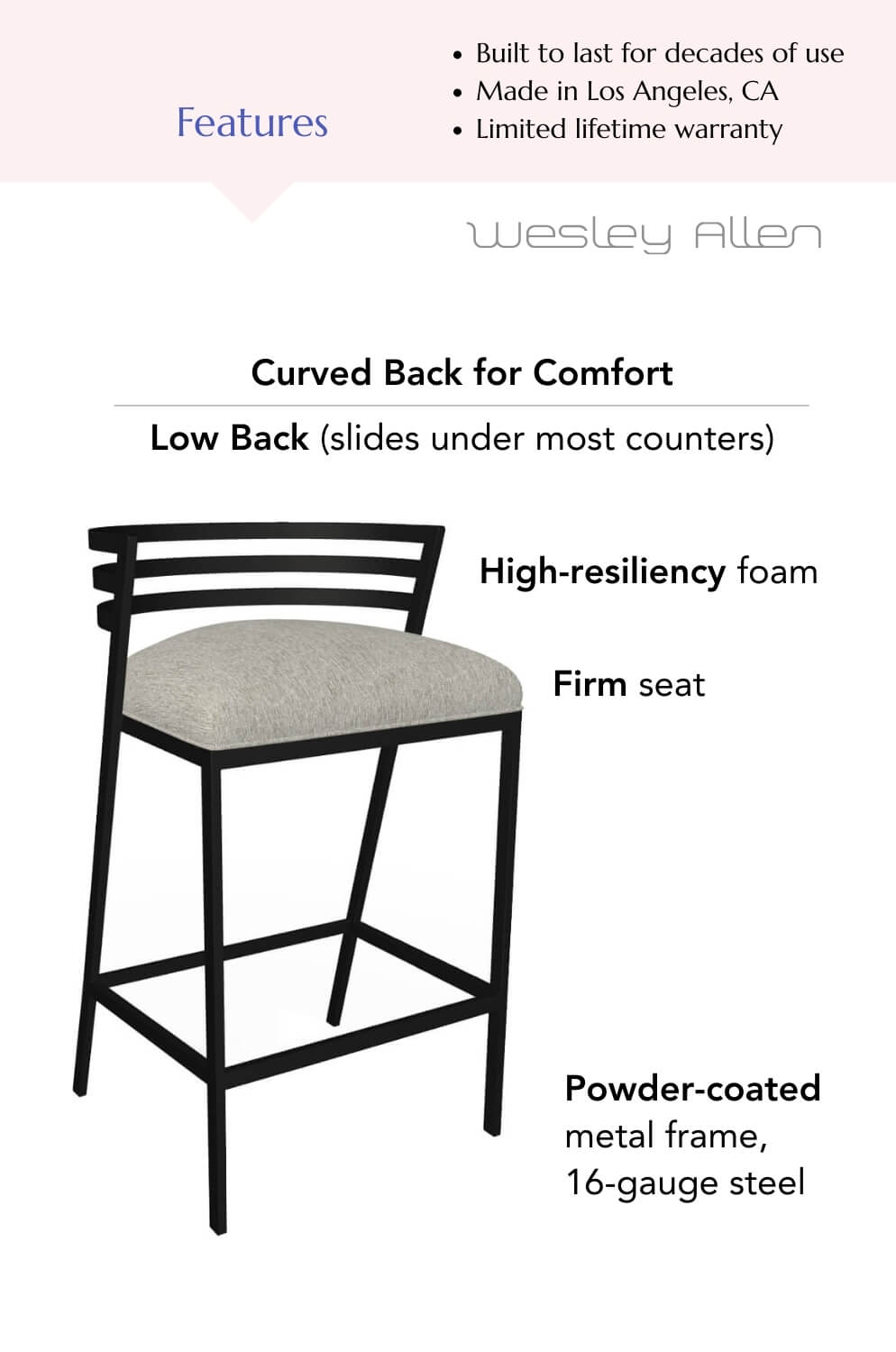 Seize the chance to craft a piece distinctly yours. Introduce Wesley Allen’s Arlo counter stool to your kitchen now, and revel in an unparalleled fusion of fashion, coziness, and practicality.