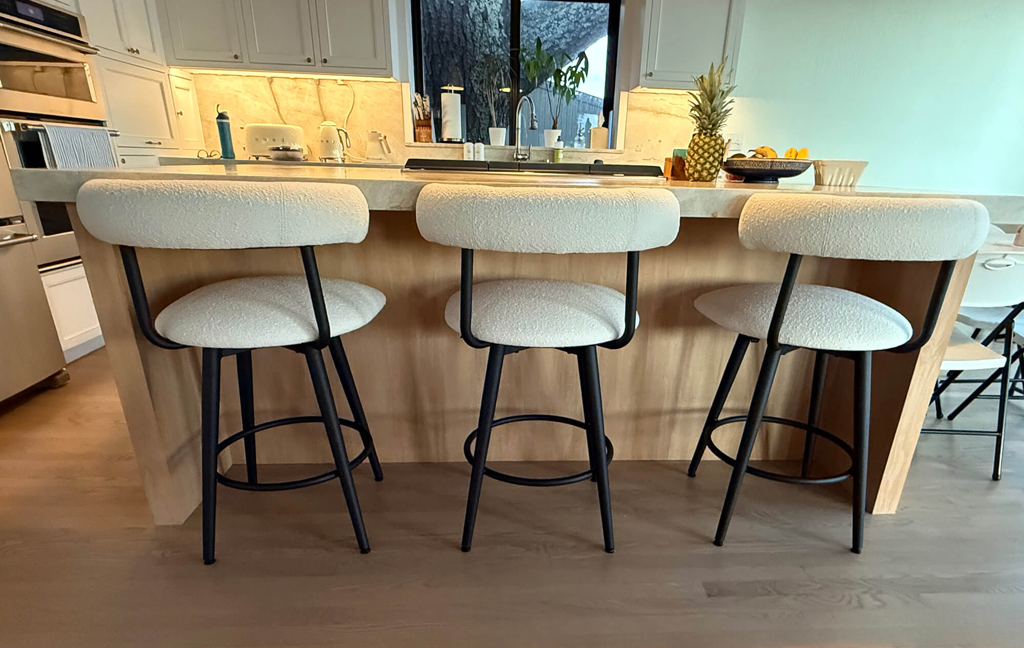"Our kitchen counter stools look great! The material feels good and high quality; they’re very comfortable. They look fantastic with our decor. No complaints about the finished product.