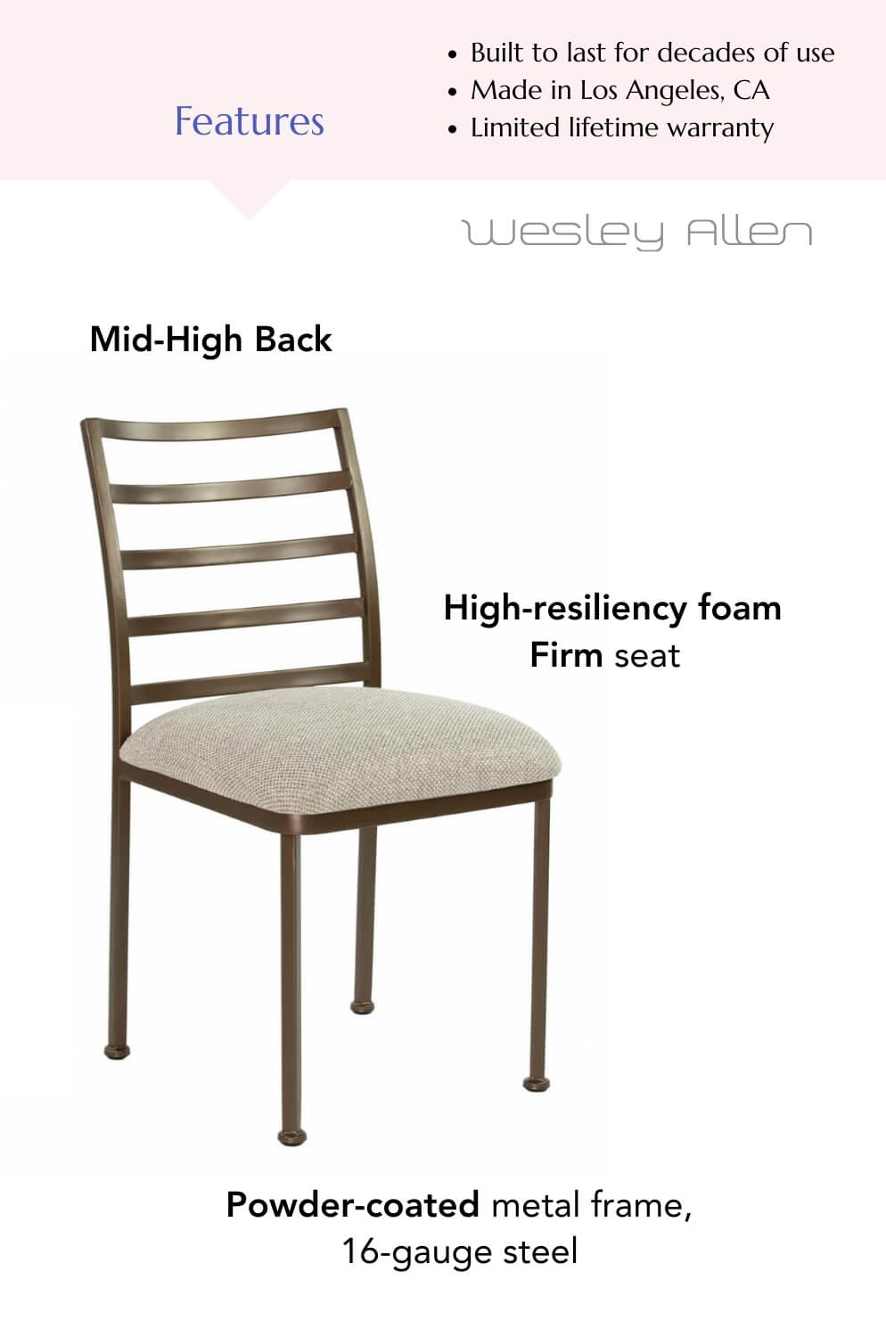The Benton chair isn’t just about aesthetics; comfort is thoughtfully integrated into its design. The backrest showcases a charming ladder-back design with a gentle curve, cradling you in comfort as you indulge in your dining experiences.
