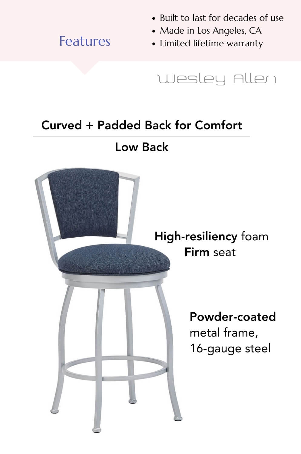 Picture enjoying a hot cup of coffee or a chilled beverage with someone special, seated on the charming Boise swivel bar stools by Wesley Allen.