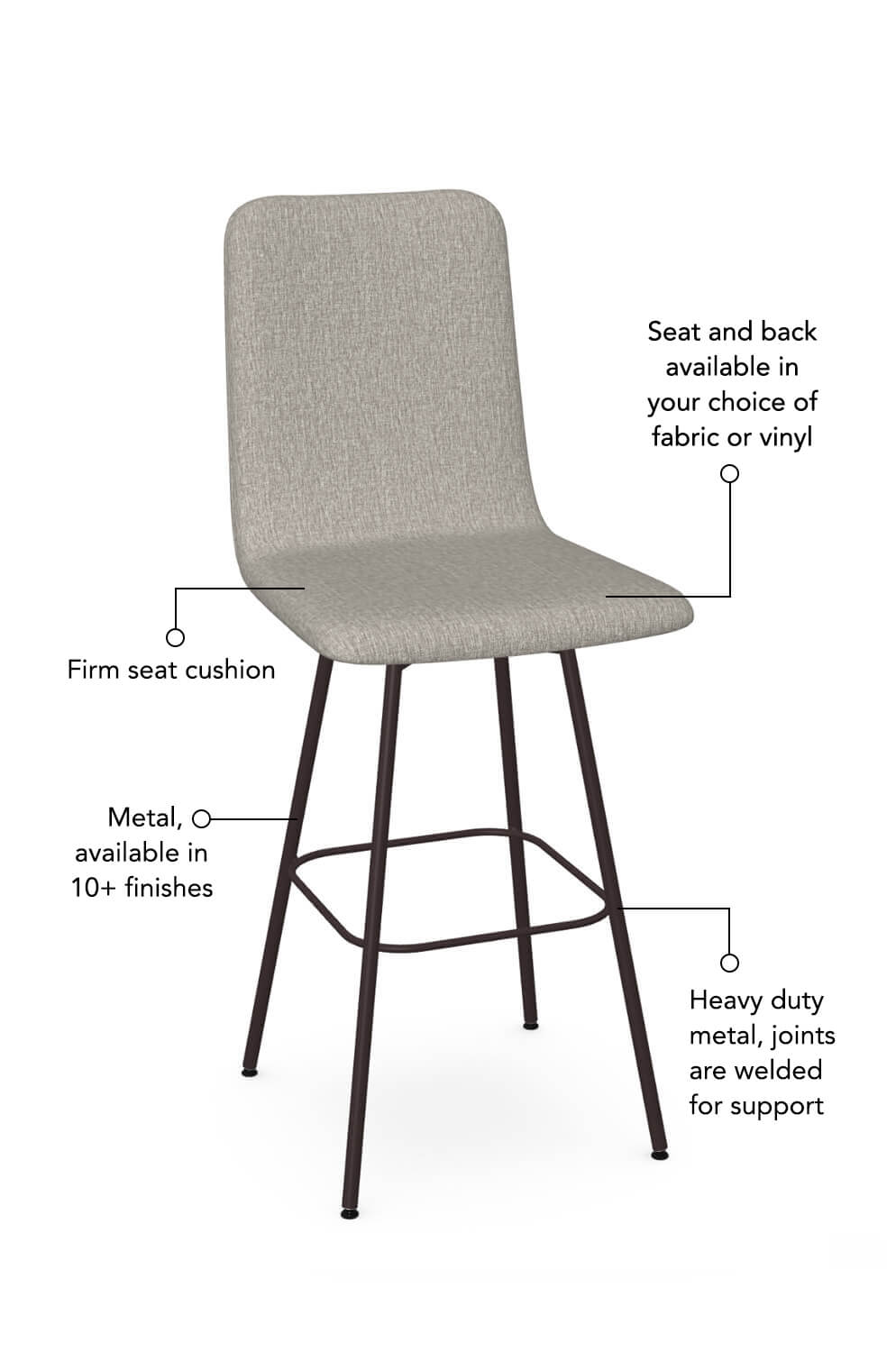 Amisco's stools feature comfortable cushioned seats, perfectly placed footrests, and straight, strong legs — everything you'd expect in a high-end bar stool, plus a refined sense of style that's just so right now.