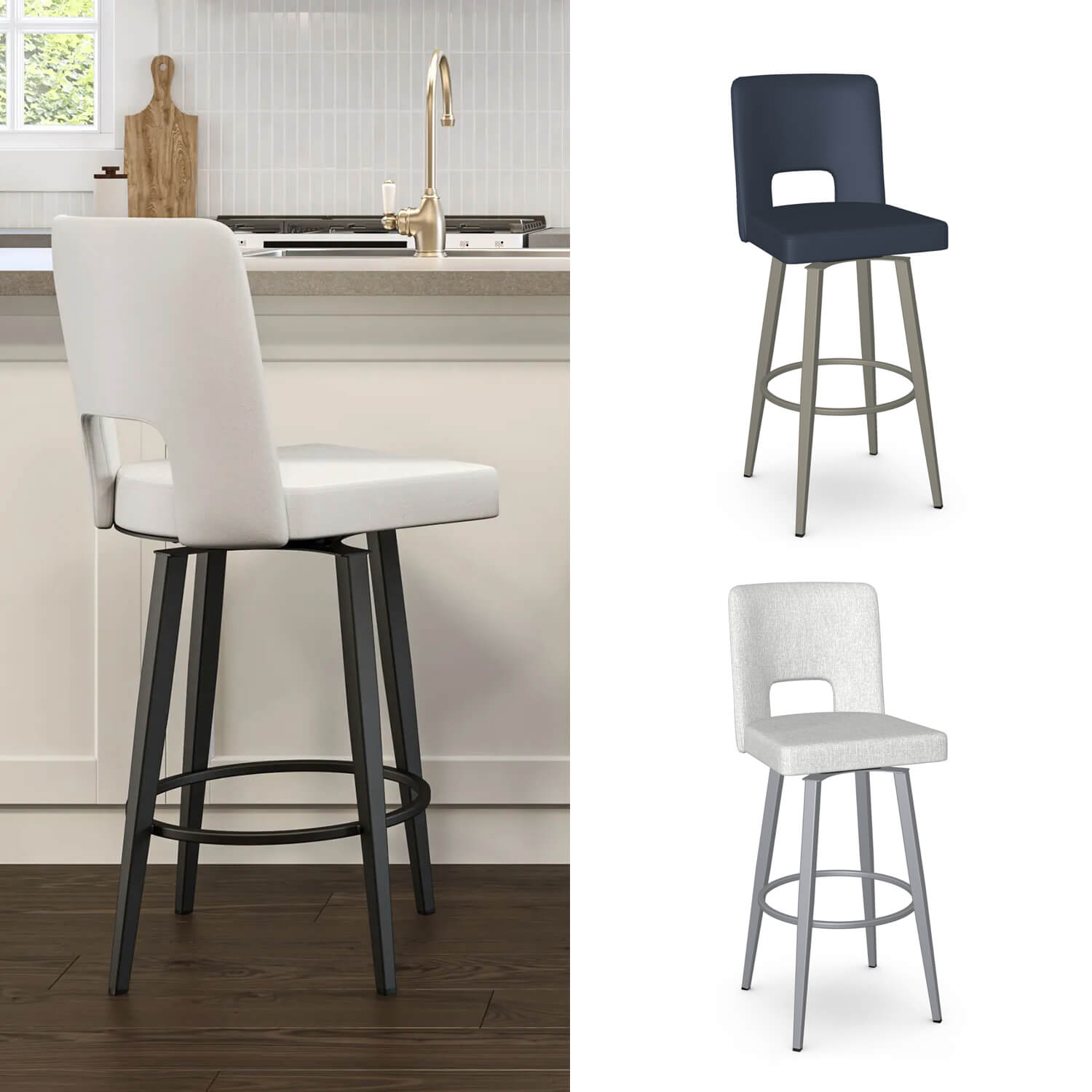 Amisco's stools feature comfortable cushioned seats, perfectly placed footrests, and straight, strong legs — everything you'd expect in a high-end bar stool, plus a refined sense of style that's just so right now.