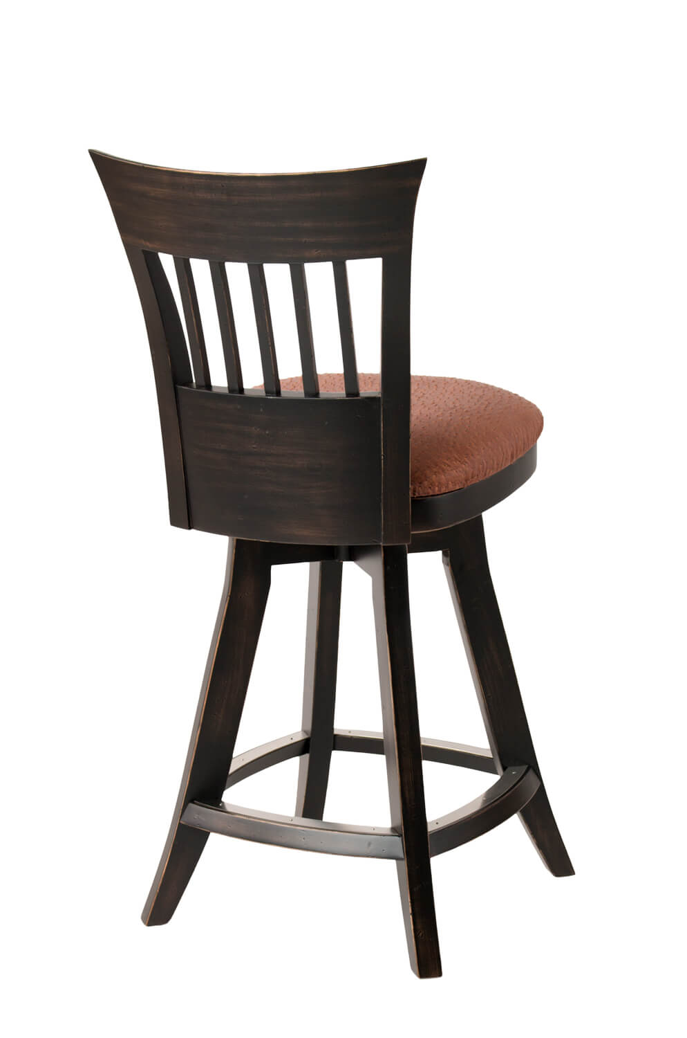 This 3-piece table set includes two 30-inch bar stools with upholstered seats and wood backs. The swivel base is made of solid maple.