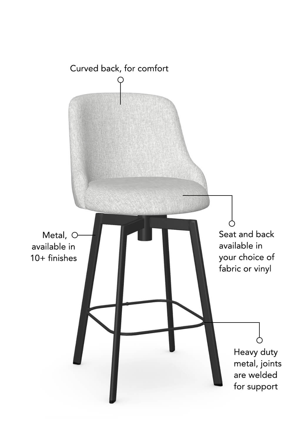 Amisco's sturdy steel-frame stools are perfect for everyday use. Every piece is designed and built in Canada and backed by worry-free after-sale support.