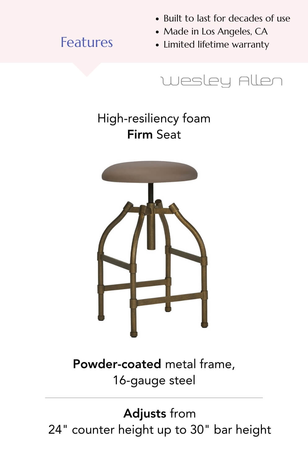 By simply turning the screw beneath the seat, it seamlessly transitions from counter heights at 24 inches to bar heights at 30 inches.