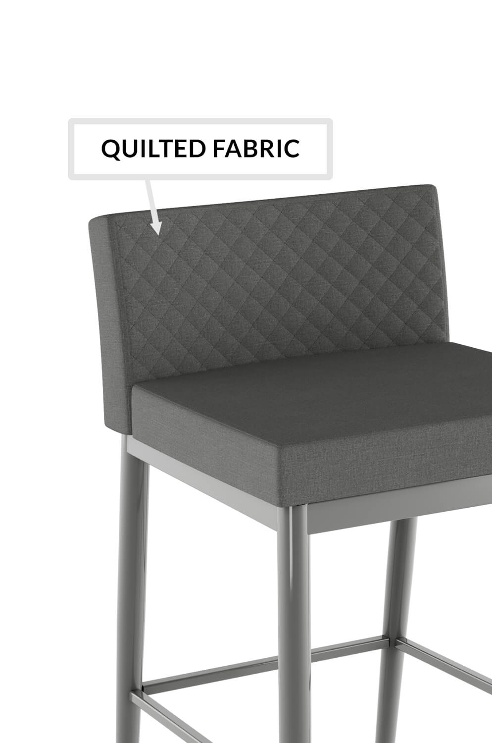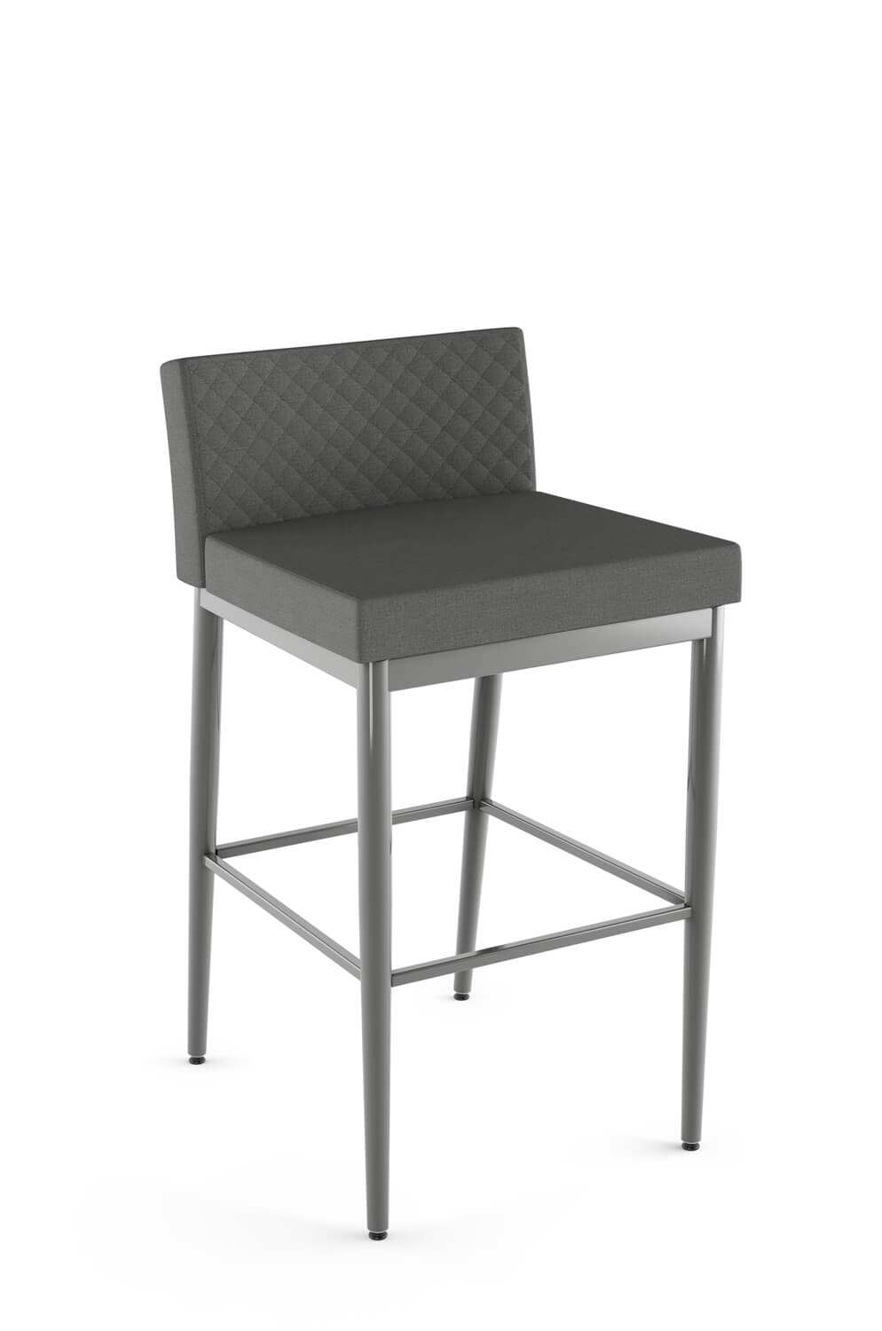Warm up your modern kitchen or home bar with the Hanson XL bar stool by Amisco featuring a low back with quilted upholstery, seat cushion, and a sturdy metal base.