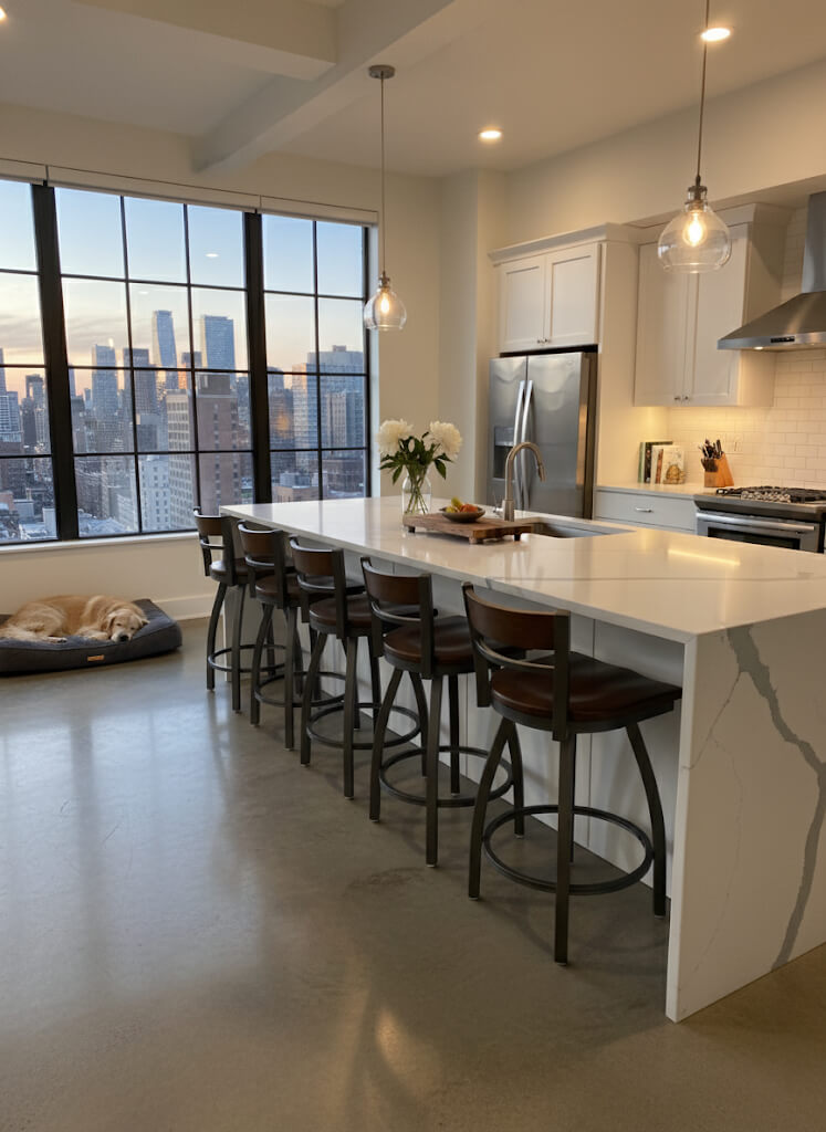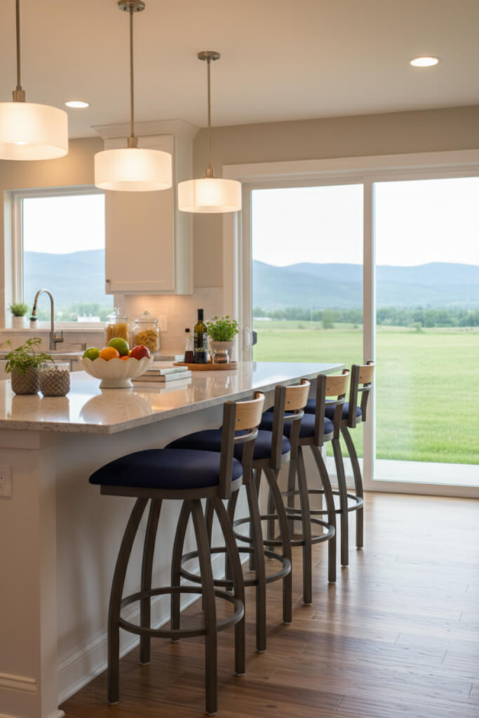 Revelle keeps things airy and open, sliding neatly under the counter when not in use. The result? A kitchen or bar area that feels spacious, stylish, and thoughtfully composed—no bulky backs in sight.