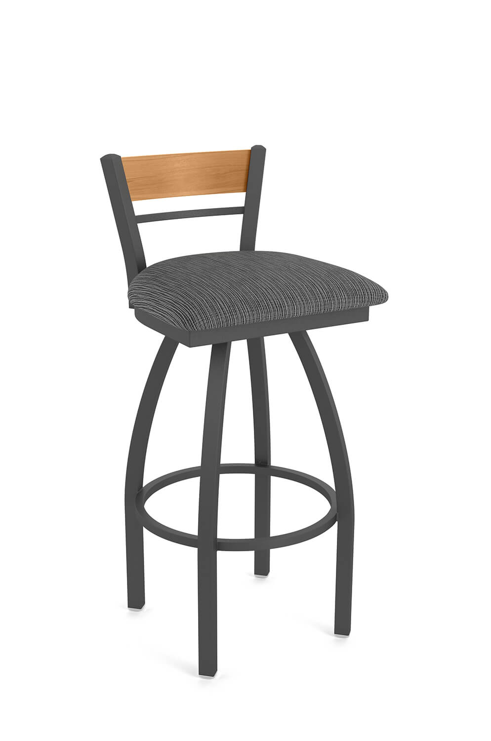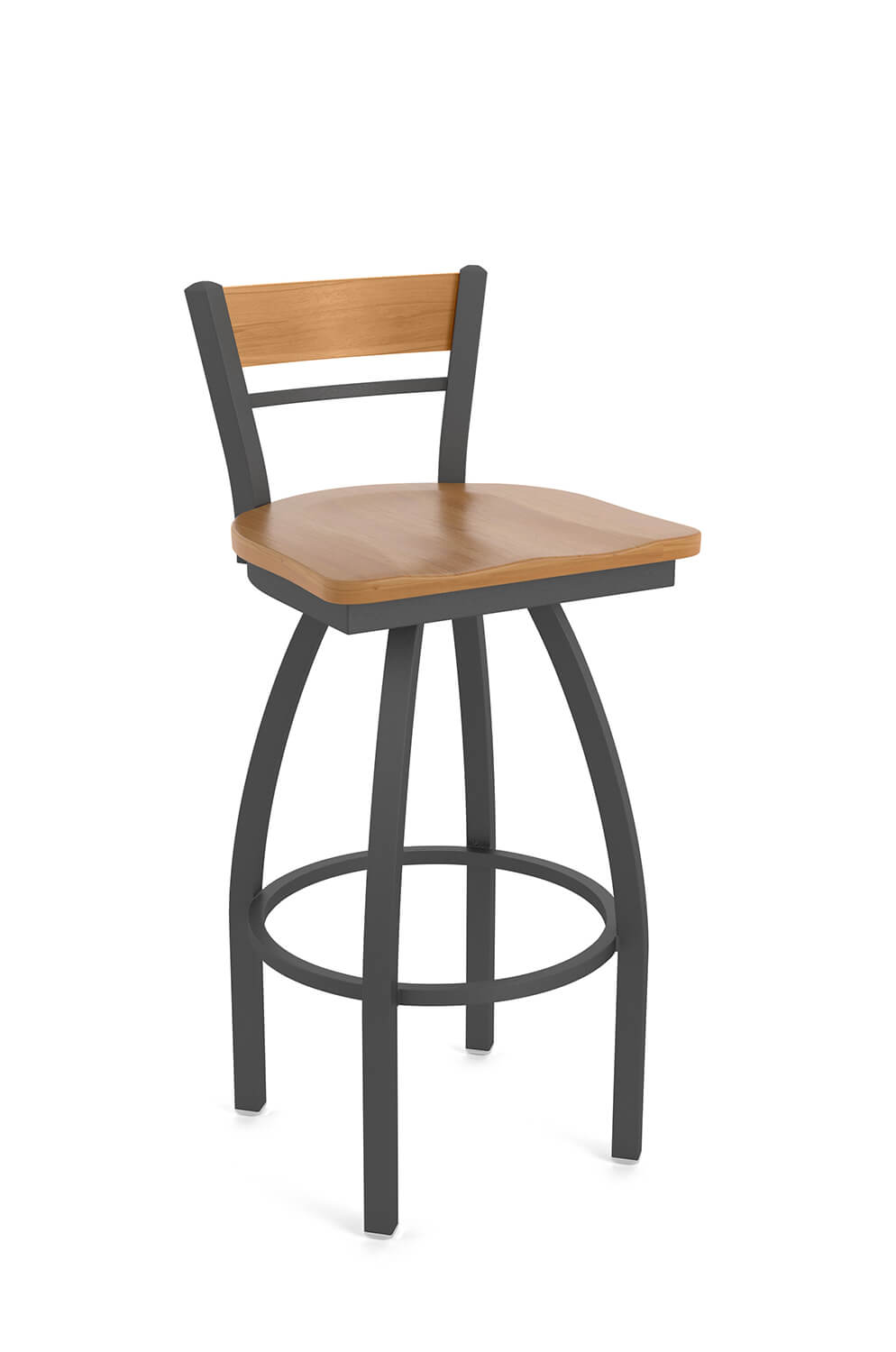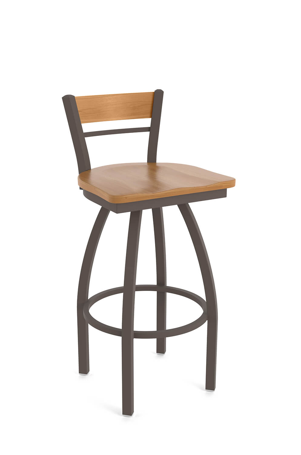 Meet the Revelle swivel bar stool which proves minimalism doesn’t mean missing out. With its sculpted steel frame and perfectly poised low wood back, this counter stool walks that fine line between form and function like it was born for the job.