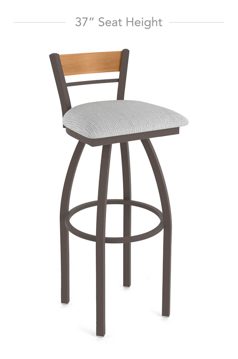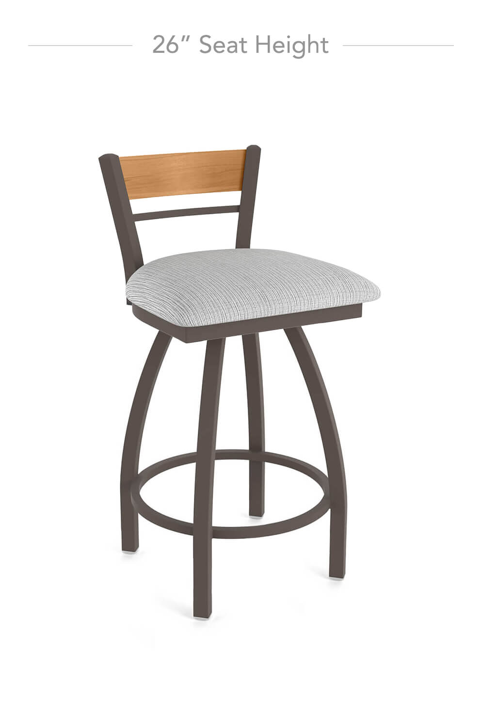 Meet the Revelle swivel bar stool which proves minimalism doesn’t mean missing out. With its sculpted steel frame and perfectly poised low wood back, this counter stool walks that fine line between form and function like it was born for the job.