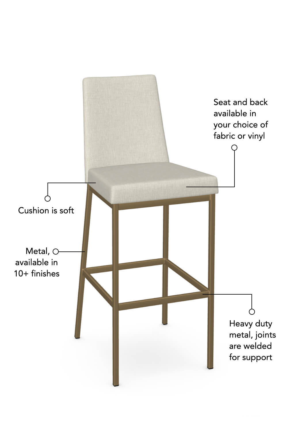 Amisco's stools feature comfortable cushioned seats, perfectly placed footrests, and straight, strong legs — everything you'd expect in a high-end bar stool, plus a refined sense of style that's just so right now.