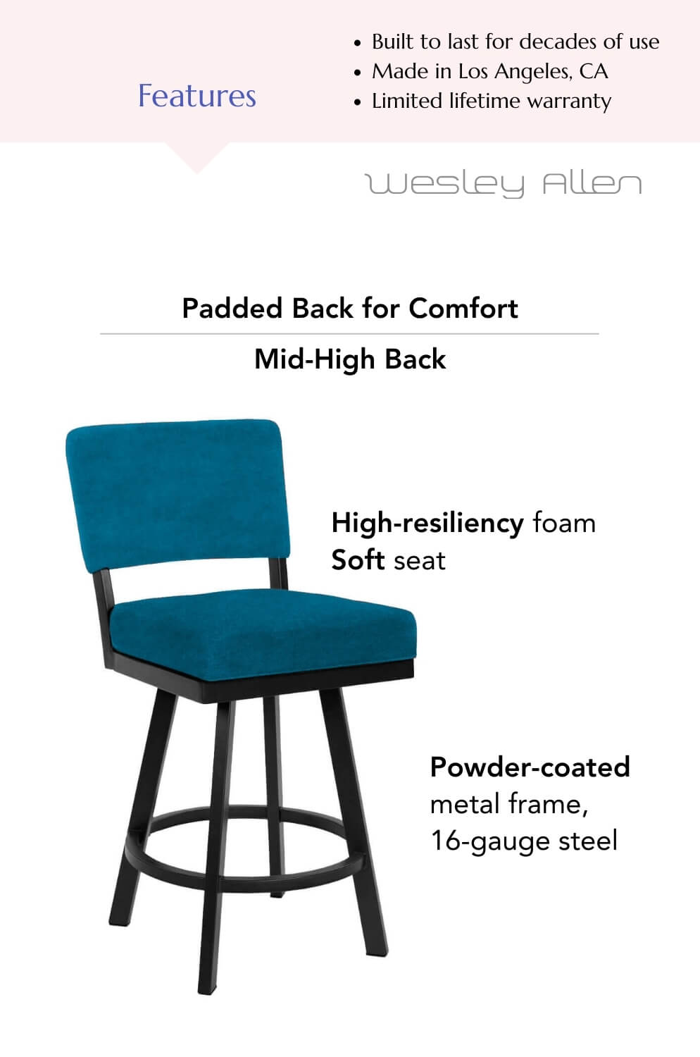 The distinctive feature that sets the Miami counter stool apart is its substantial, mid-height back.