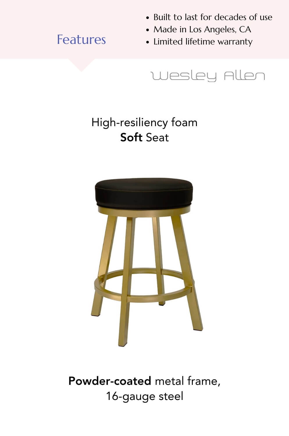 Exemplifying the enduring appeal of classic bar stool design, Wesley Allen’s Miramar backless swivel bar stool stands as a timeless masterpiece.