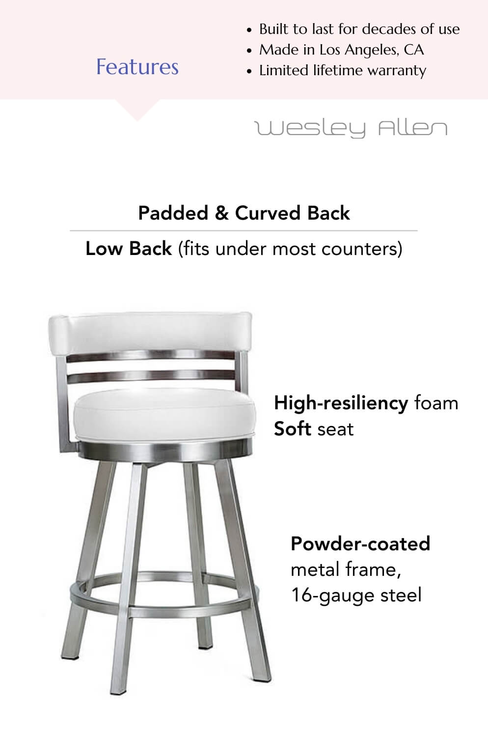 More than just a nod to contemporary style, the low back design of this stool is a smart and practical feature.
