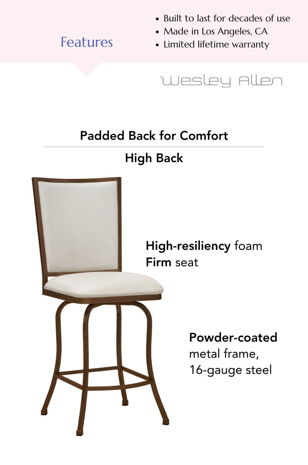 Experience this charming European vibe without ever leaving your home, courtesy of the Morrison Swivel Bar Stool, meticulously crafted by Wesley Allen.