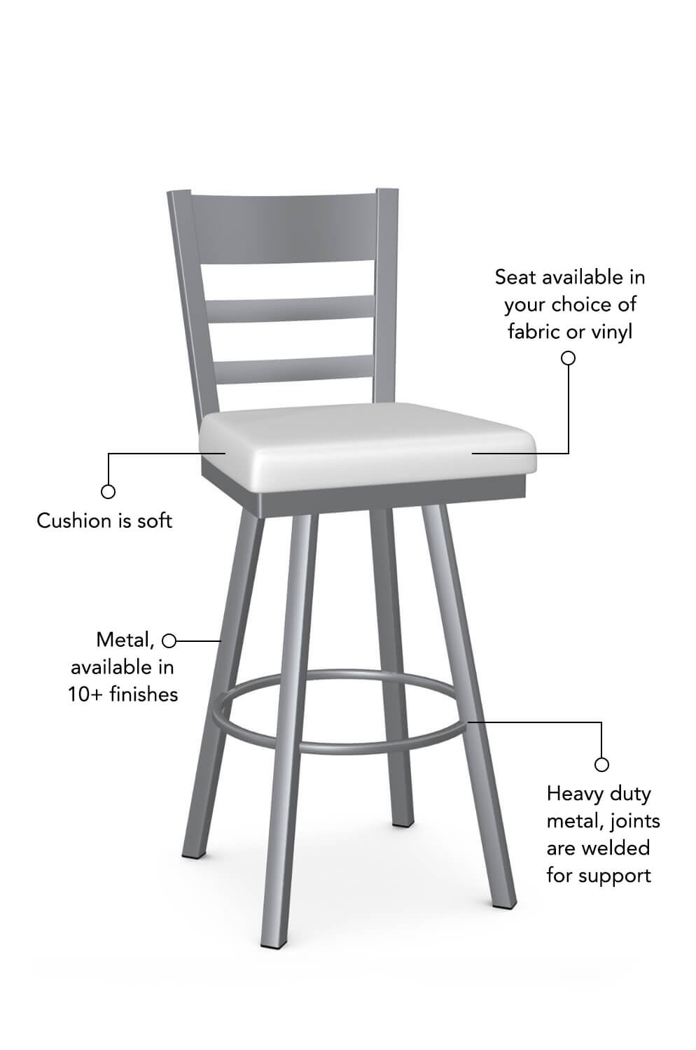 Amisco's stools feature comfortable cushioned seats, perfectly placed footrests, and straight, strong legs — everything you'd expect in a high-end bar stool, plus a refined sense of style that's just so right now.
