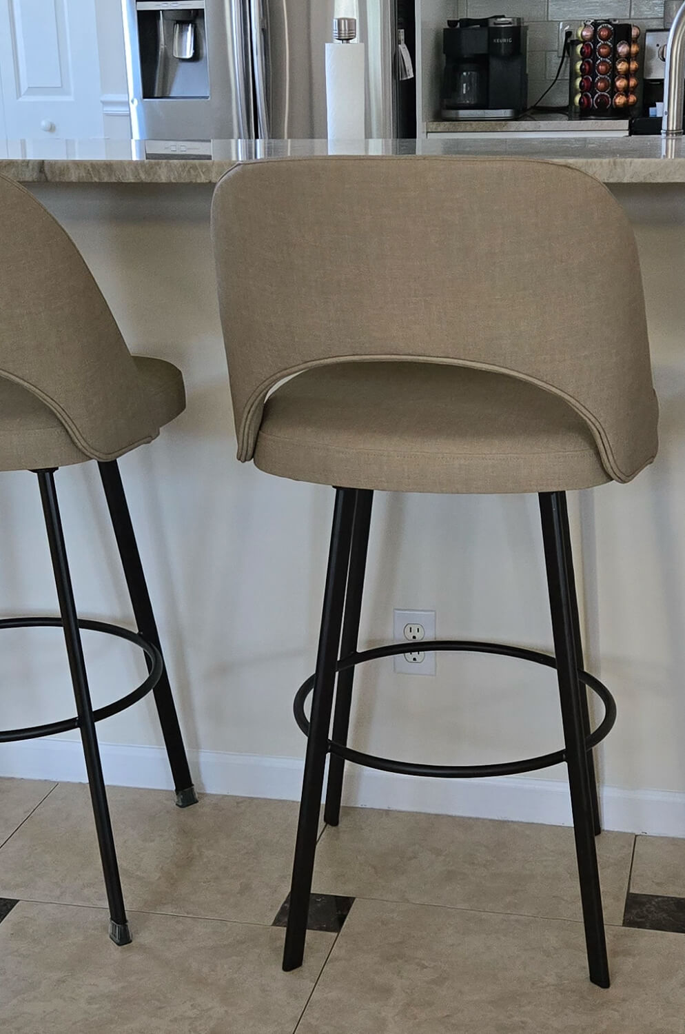 We invite you to personalize the Scarlett counter stool to fit your unique taste. Be it vibrant colors or classic neutrals, we’re prepared to bring your vision to life.