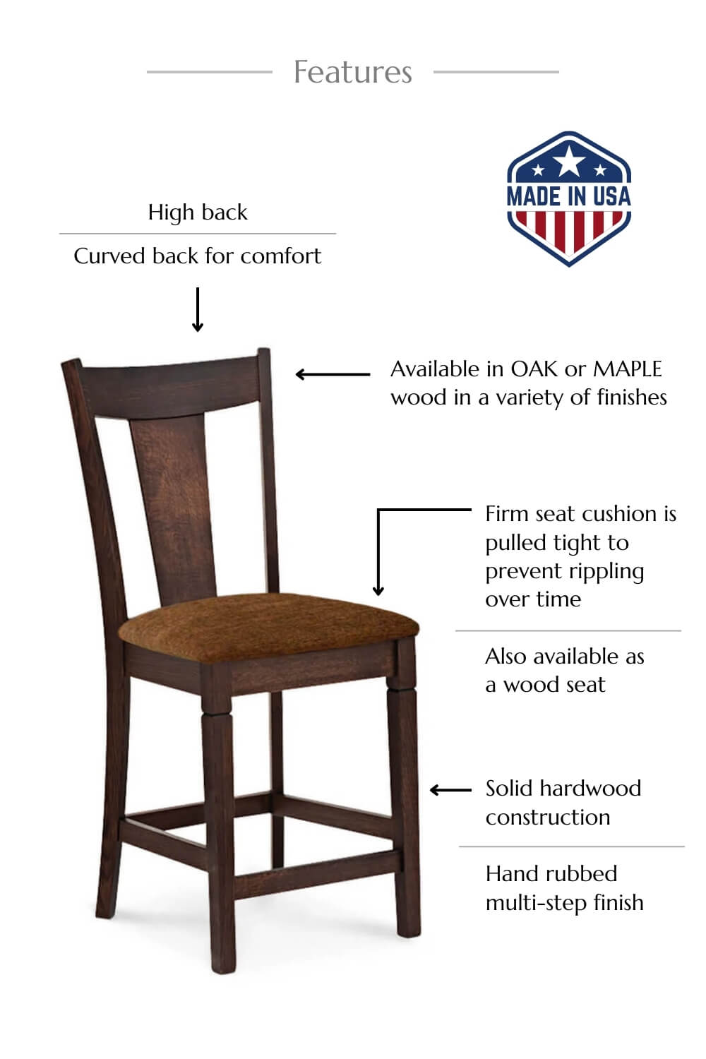 Our Simply Amish collection includes two bar stools with a similar design: the Allison and the Arnold.