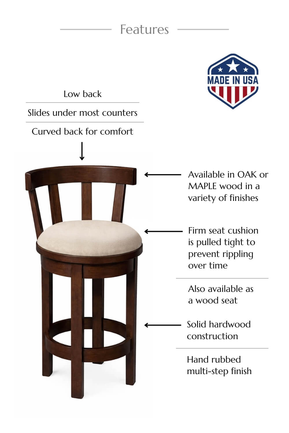 Rooted in Amish bar stool tradition, the Barrel swivel stool blends Mission-style strength with transitional warmth.