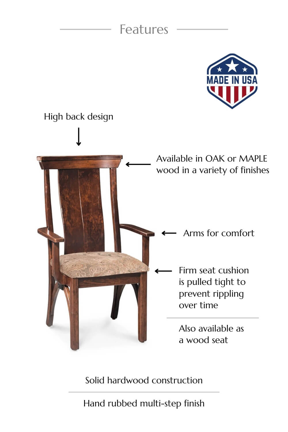 Each B&O Railroad© Trestle Bridge Arm Chair is handcrafted by Amish artisans in the USA from North American hardwoods.
