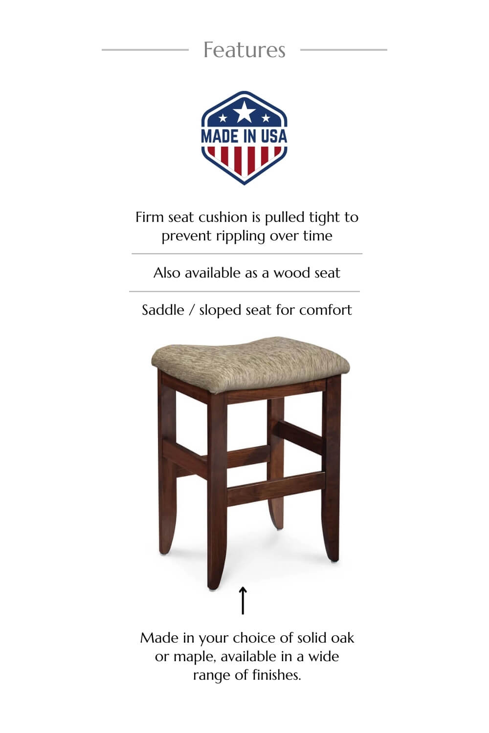 Customize with your choice of wood species, stains, and finishes to create a stool that feels like it was made just for your space. Request free samples to see your options before making your final decision.