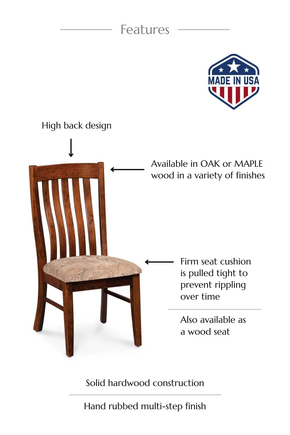 Handcrafted by Amish artisans in the USA, the Bradford Side Chair is built using traditional joinery and premium North American hardwoods.