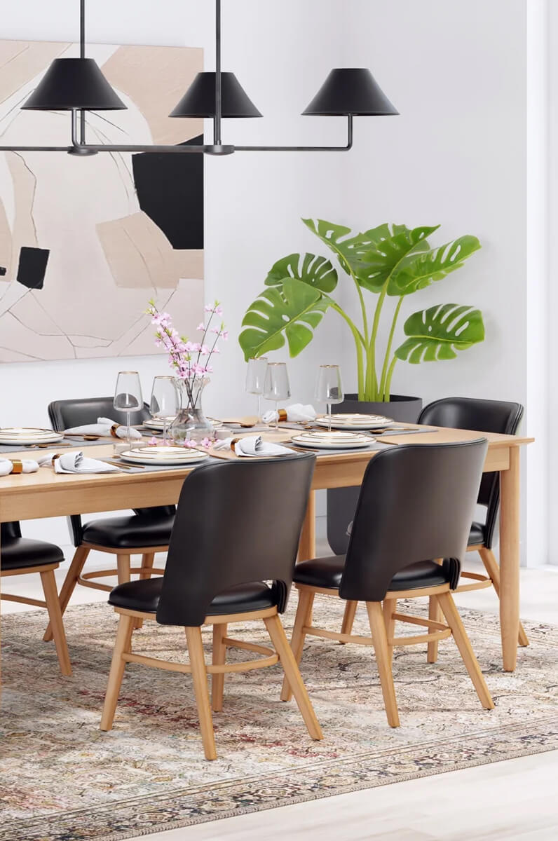 The curved backrest and plush seat deliver support, perfect for long dinners or extended gatherings.