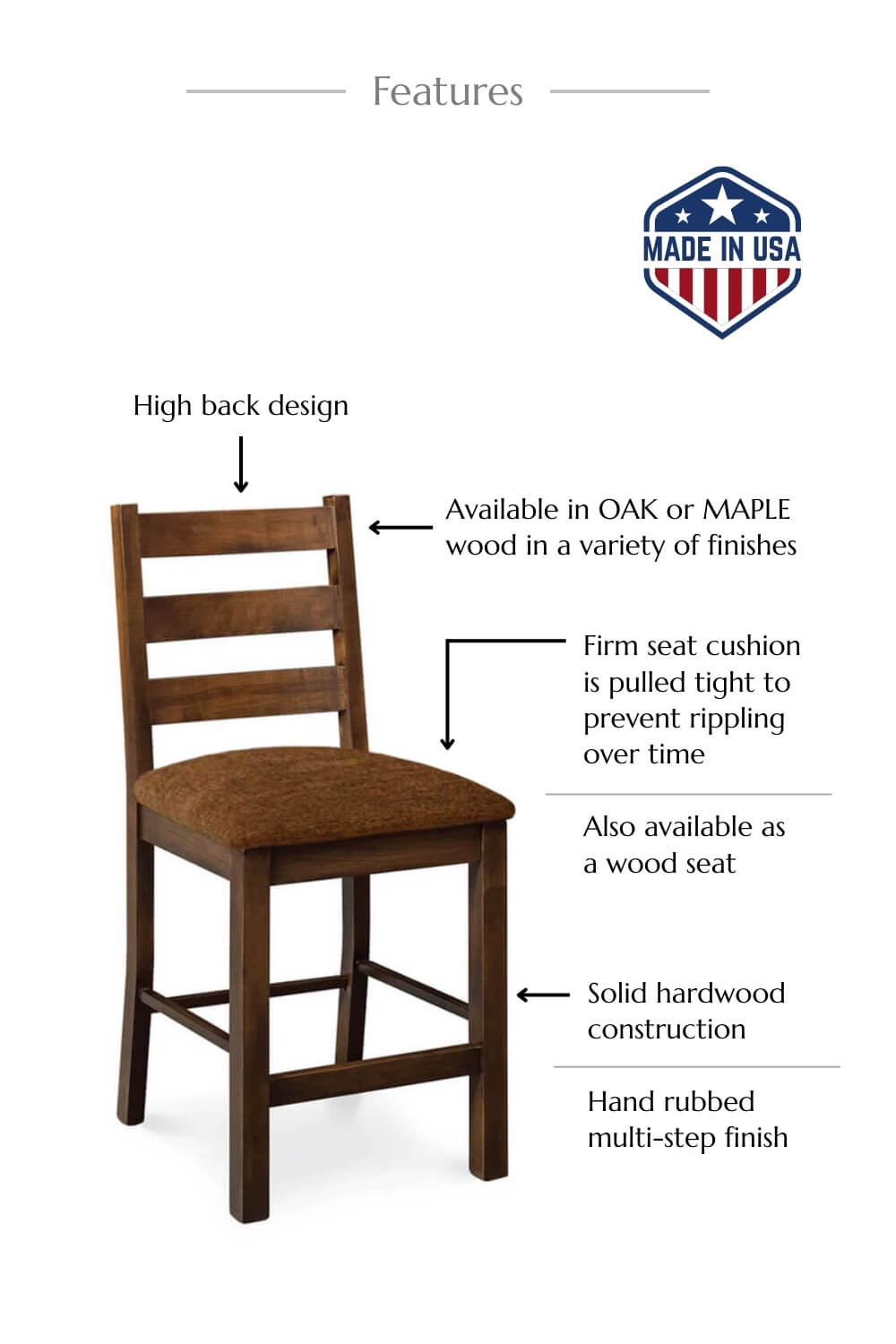 Built with a stationary seat, the Camden stays firmly in place — a feature prized in Amish made counter stools.
