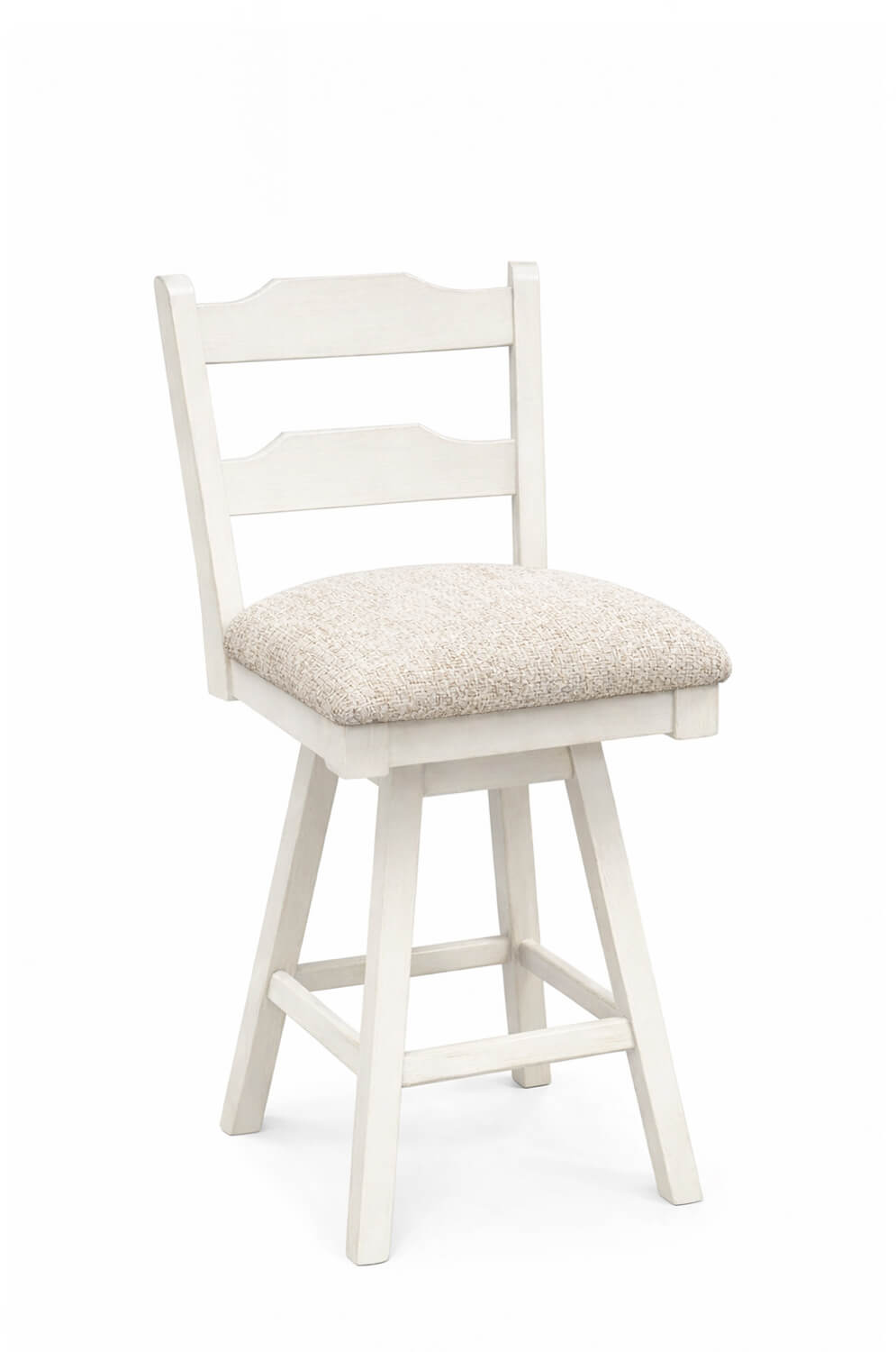 Graceful ladder-back lines, a sculpted wood seat, and a smooth swivel base make this wood bar stool a standout for kitchens and dining spaces.