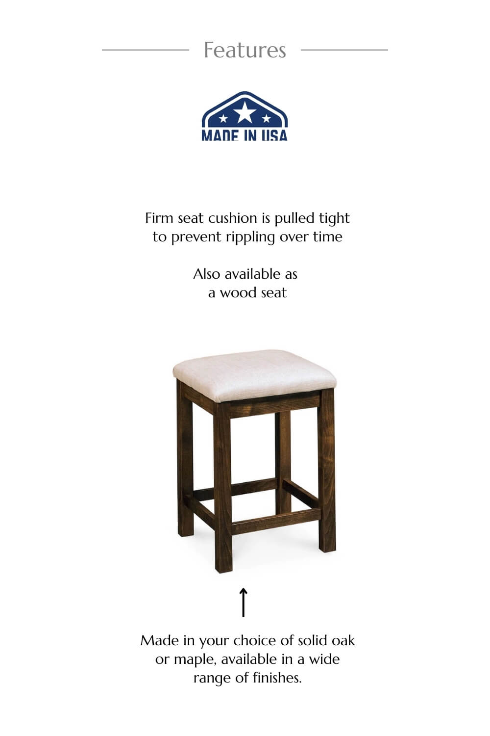 Choose from a wide variety of wood species, stains, and upholstery options to create a stool that feels like it belongs in your home. Request free samples and explore your options before deciding.