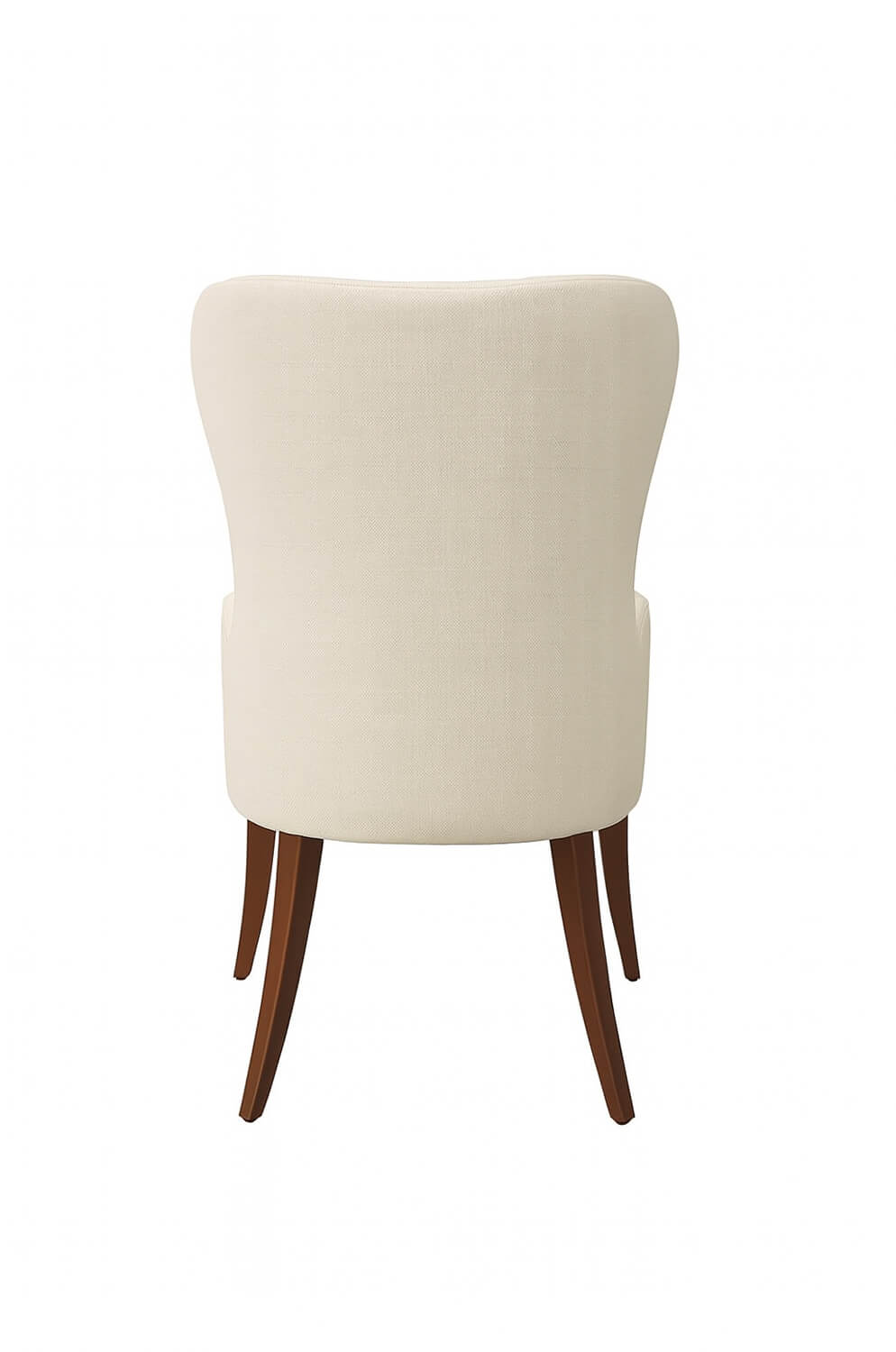 Anchored by solid wooden legs in a deep, sophisticated tone, this chair stands as a testament to enduring grace and style.