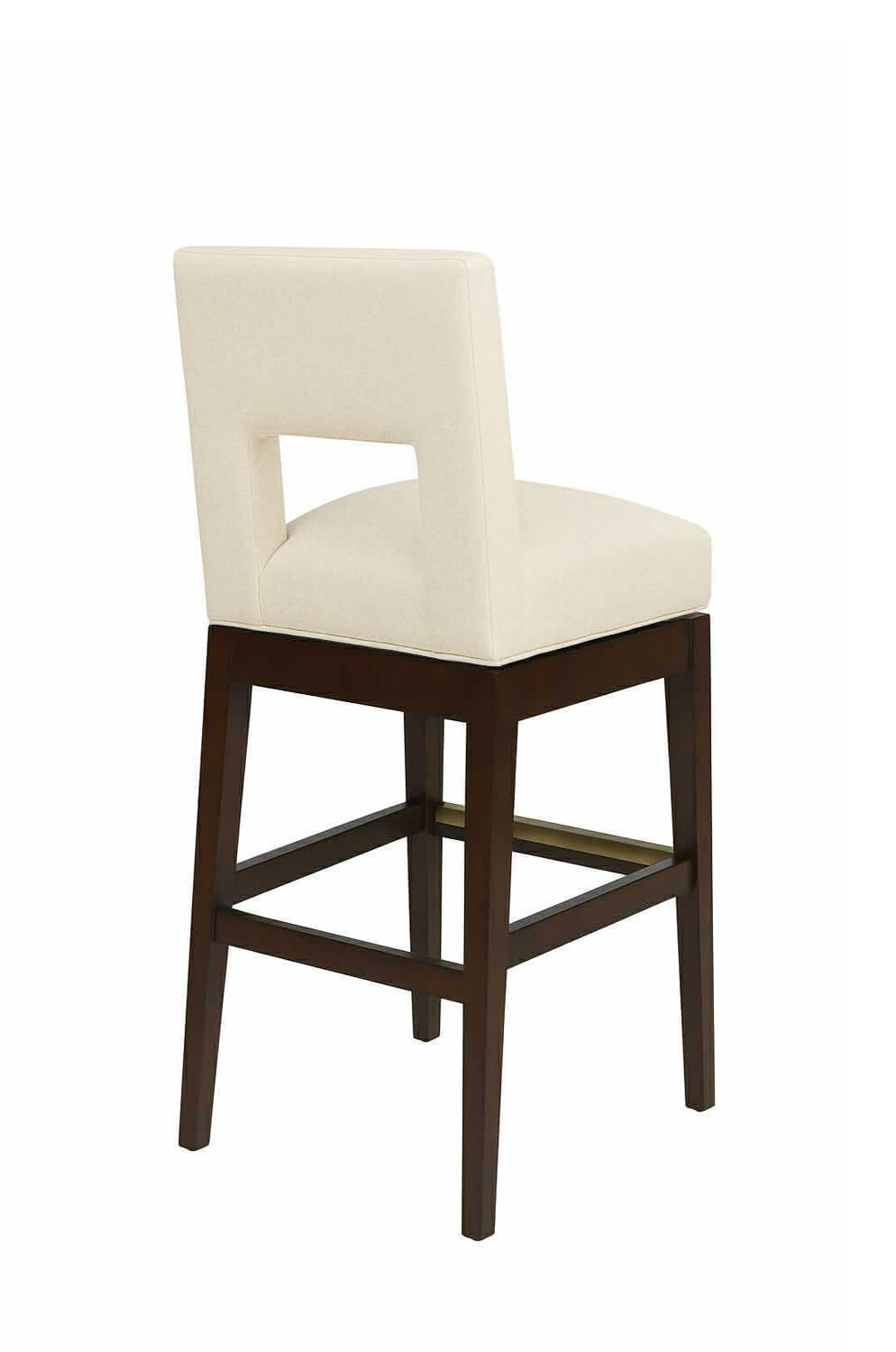 Boasting a backrest with a striking square cut-out and a gentle recline, this bar stool beckons you to settle in for a leisurely sit-down. The square, plush seat is designed for prolonged comfort.