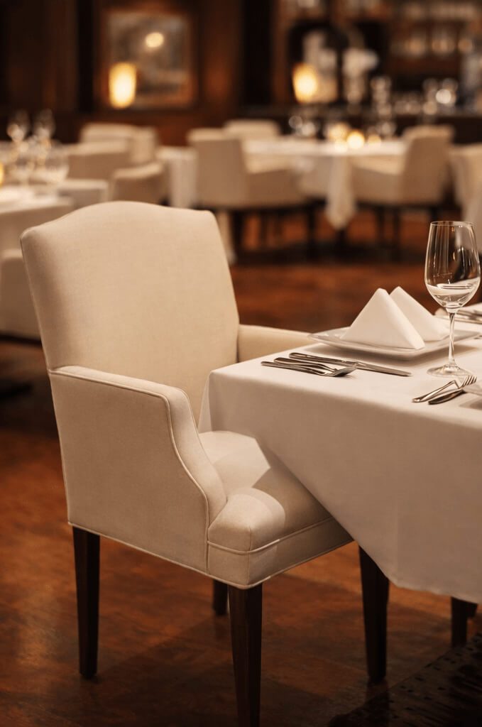 The 802A dining chair, distinguished by its tall and upright backrest, provides a comforting and supportive embrace, perfect for decompressing after a busy day or sipping a relaxed coffee on a serene Sunday morning.