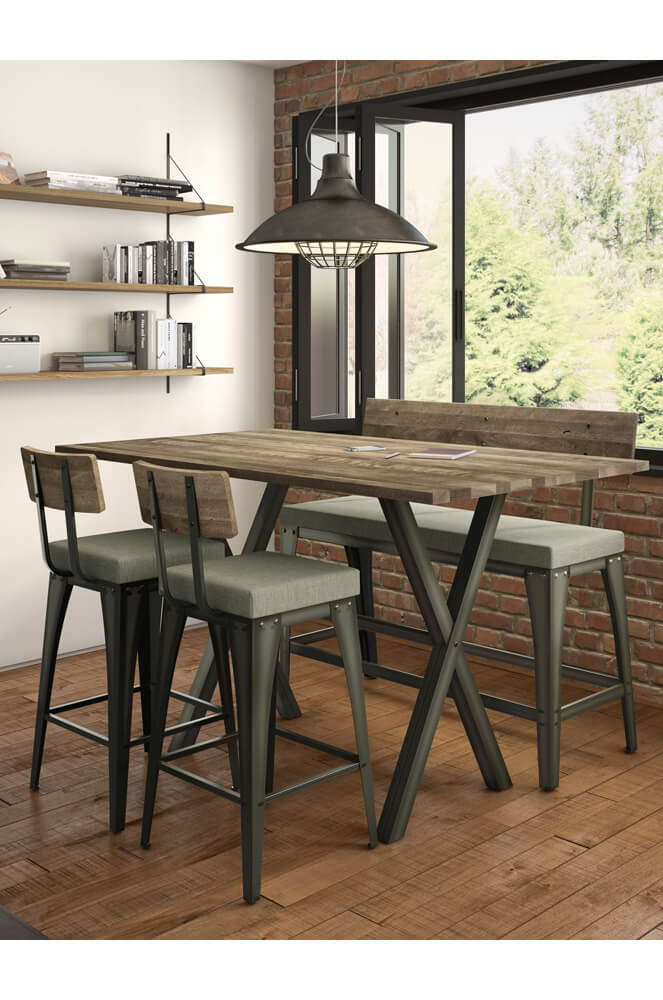 Amisco's Upright Modern Tabouret Bar Stool with Back Amisco's Architect Double Barstool Bench with Pub Table and Two Stools in Industrial Dining Room Amisco Upright Stationary Stool in Industrial Modern Kitchen Amisco's Modern Upright 26" Inch Bar Stools in Farmhouse Country Kitchen Amisco's Upright Industrial Custom Made Bar Stool with Back Amisco's Upright Modern Barstool with Wood Back, Square Seat Cushion, and Brown Metal Finish Amisco's Upright Industrial Rustic Black Bar Stool with Wood Back Soft seat cushion is available in fabric or vinyl, wood back comes in a variety of stains, and the metal is welded at the joints for support. This bar stool is custom made for you! Amisco's Upright Counter Height Dimensions Amisco's Upright Bar Height Dimensions