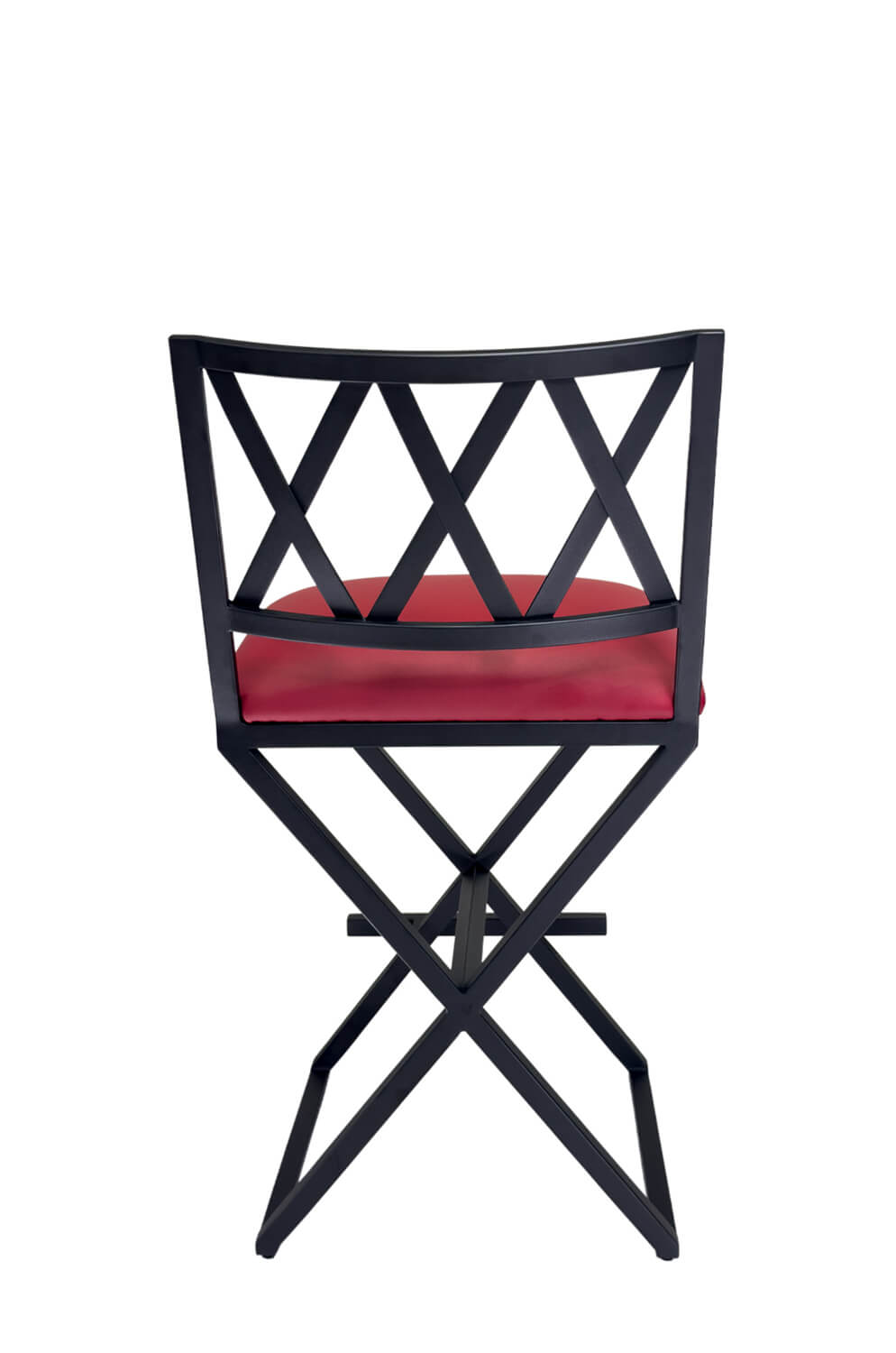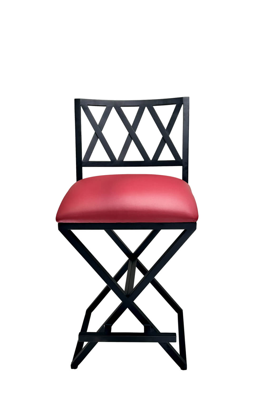 The geometric backrest, featuring three X’s, not only holds interest, but also provides a captivating focal point. It’s a piece that effortlessly adds personality to kitchens and home bars alike.