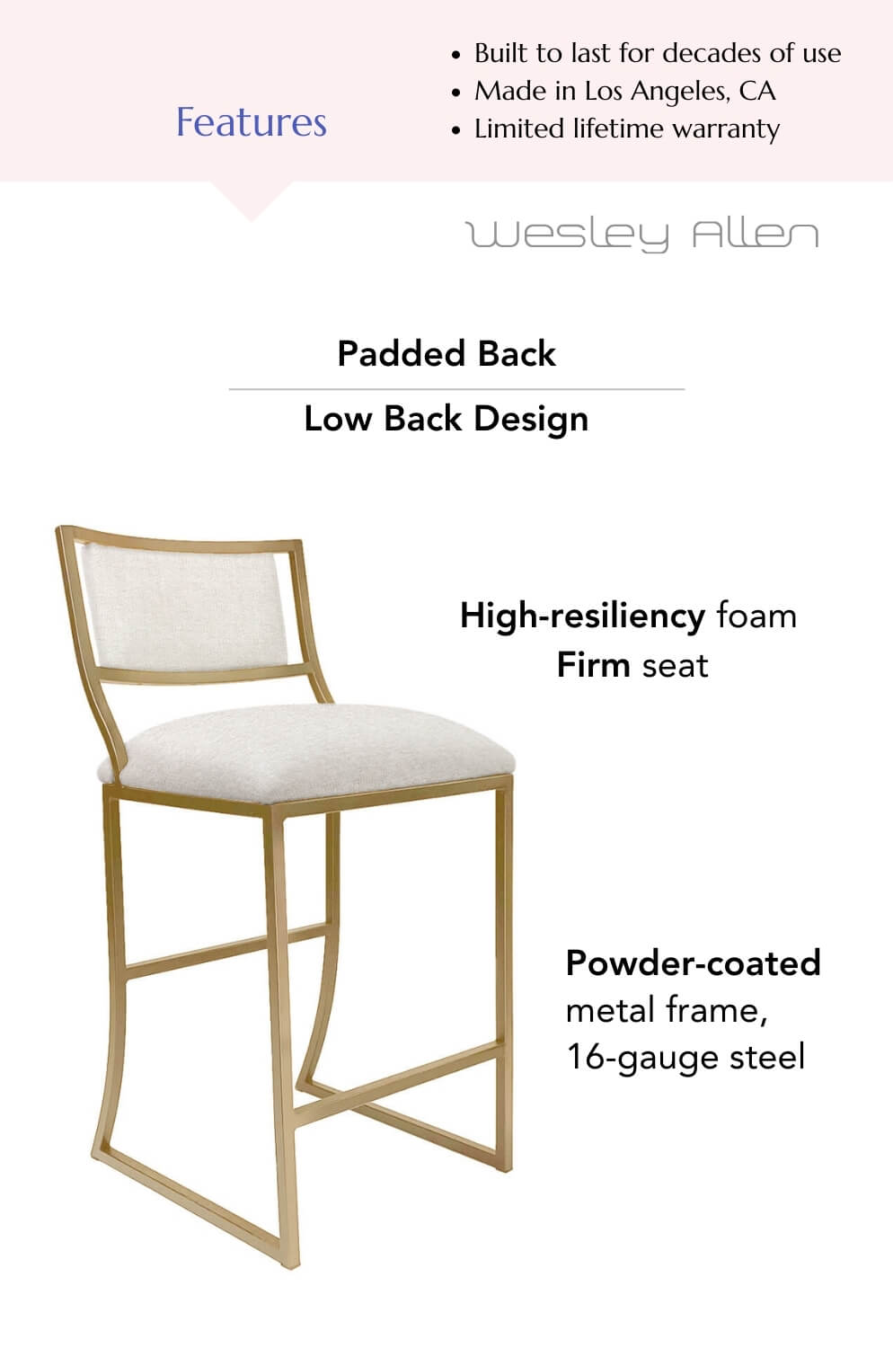The low-back design of this stool is more than just a nod to modern style trends.