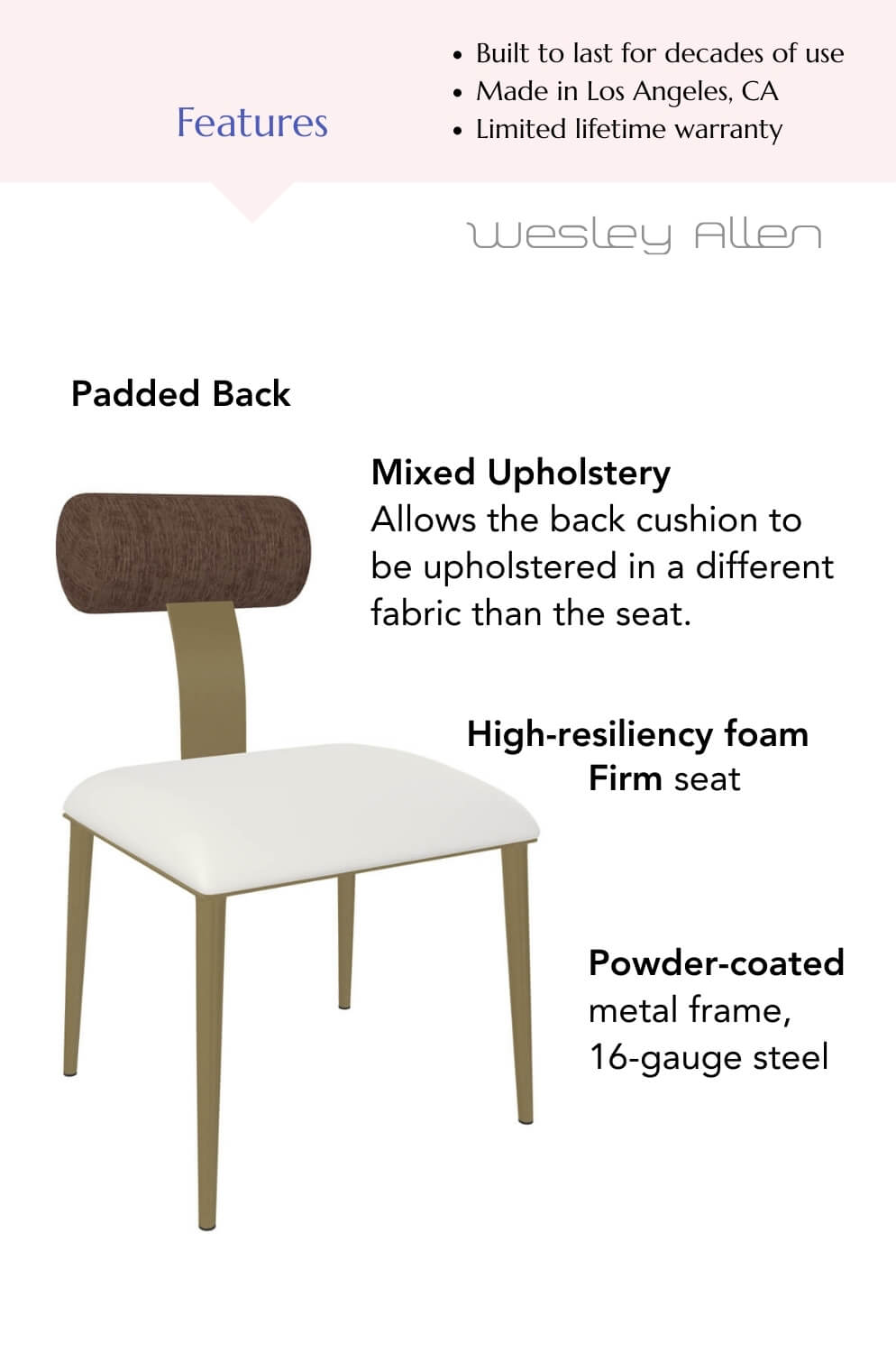 The Wesley Allen Luca dining chair brings confidence to the table—stylish, supportive, and thoughtfully designed for spaces that value comfort as much as aesthetics.