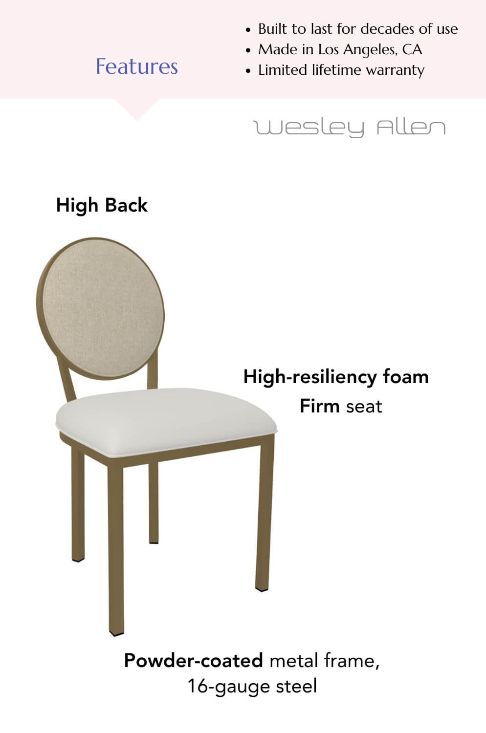 Select your ideal metal finish for the frame and choose between fabric or vinyl for the seat and back cushion.