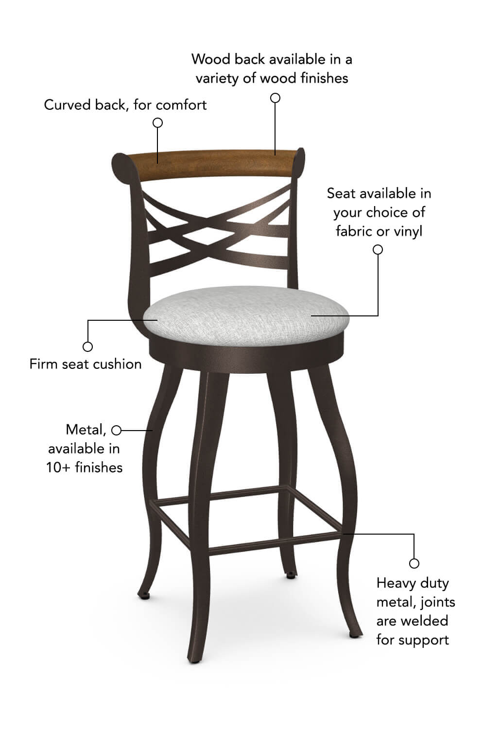 Amisco's sturdy steel-frame stools are perfect for everyday use. Every piece is designed and built in Canada and backed by worry-free after-sale support.